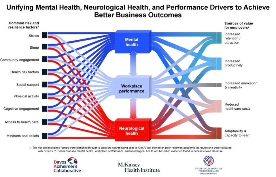 The Davos Alzheimer's Collaborative, the McKinsey Health Institute, and the Business Collaborative for Brain Health published a framework which explains that the stress people carry doesn’t just affect our mental health. It affects our neurological health, and our workplace performance.